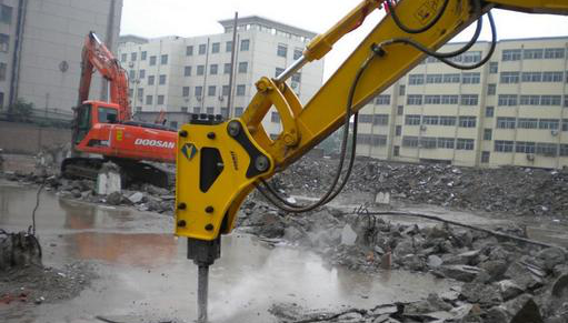 液壓錘屬于沖擊式液壓振動(dòng)裝置,又稱為破碎器等。在工程上它主要用于對巖石、鋼筋混凝土、瀝青水泥路面及舊建筑物等堅(jiān)硬物進(jìn)行破碎、打孔、拆除等作業(yè)。